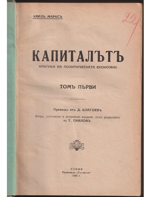 Капиталътъ. Томъ 1